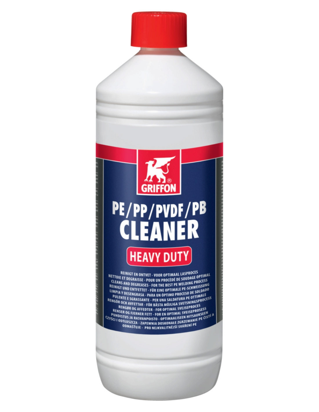 Para limpiar y desengrasar tubos, manguitos y empalmes de PE, PP, PVDF y PB. También es adecuado para la limpieza de equipos de soldadura. Utilizar en combinación con Griffon Cleaner Cloth.