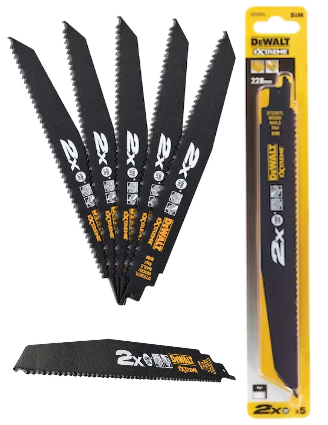 Hoja de sierra sable bi-metal Extreme 2X de demolición, longitud: 228mm, paso de diente: 4,2mm para madera y clavos - DT2307L-QZ