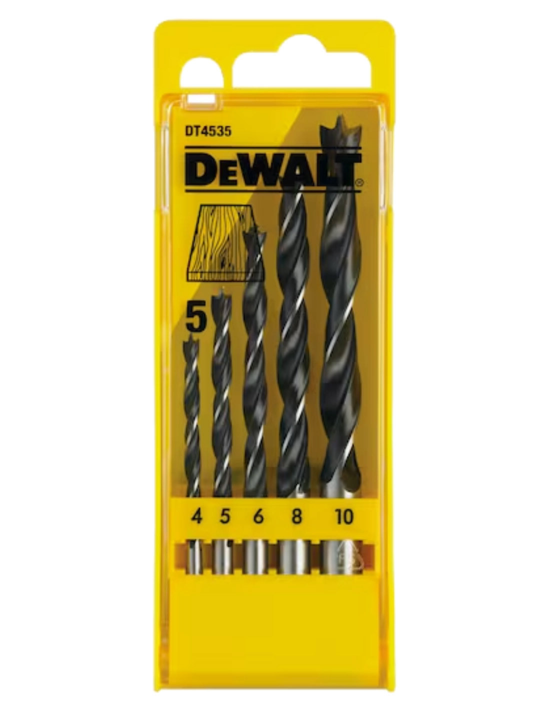 Juego de 5 brocas estándar para madera en cassette de plástico Ø 4,5,6,8,10mm - DT4535-QZ